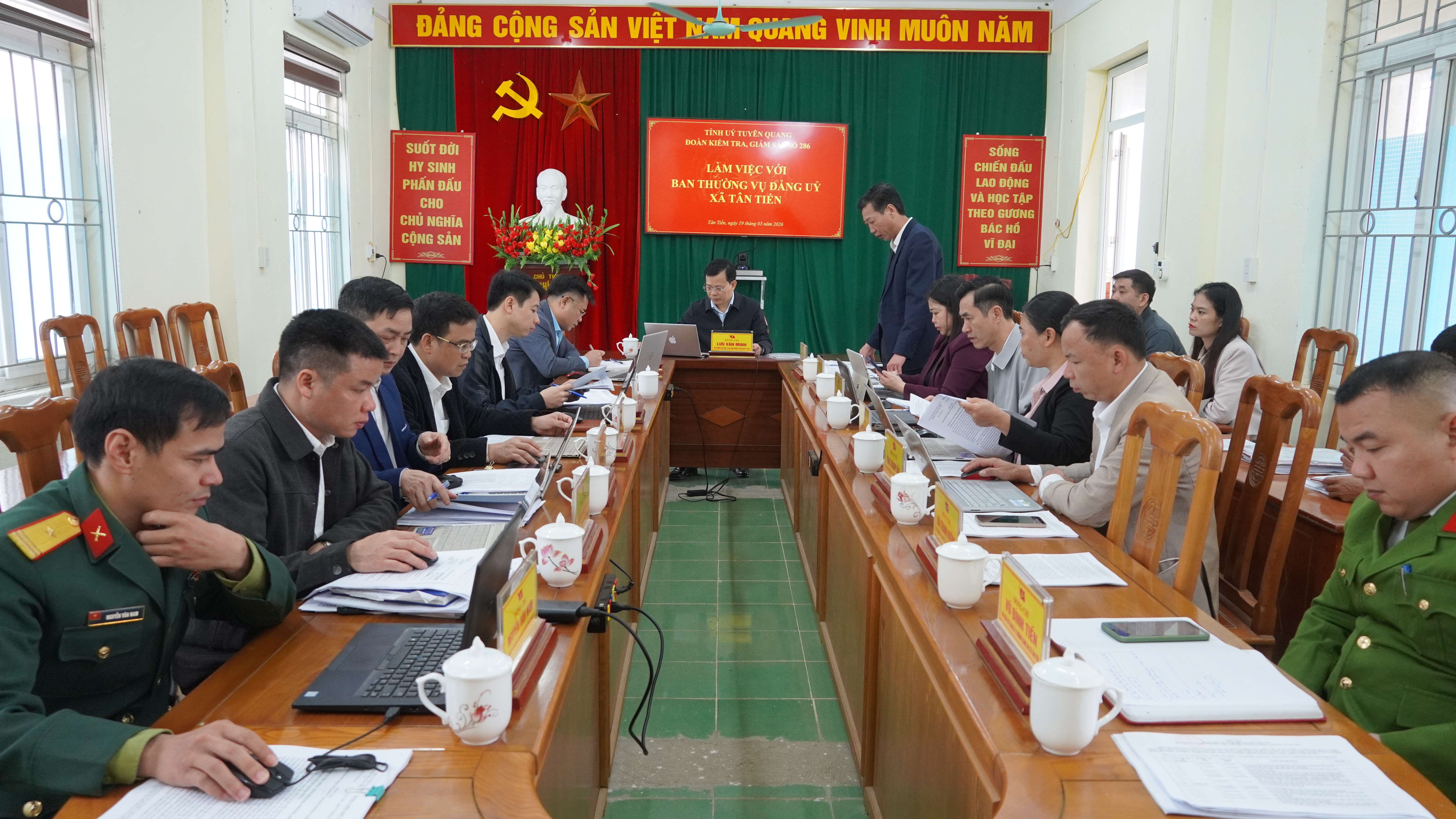 Đoàn kiểm tra, giám sát số 286 của Ban Thường vụ Tỉnh uỷ làm việc với ban thường vụ Đảng ủy xã Tân Tiến
