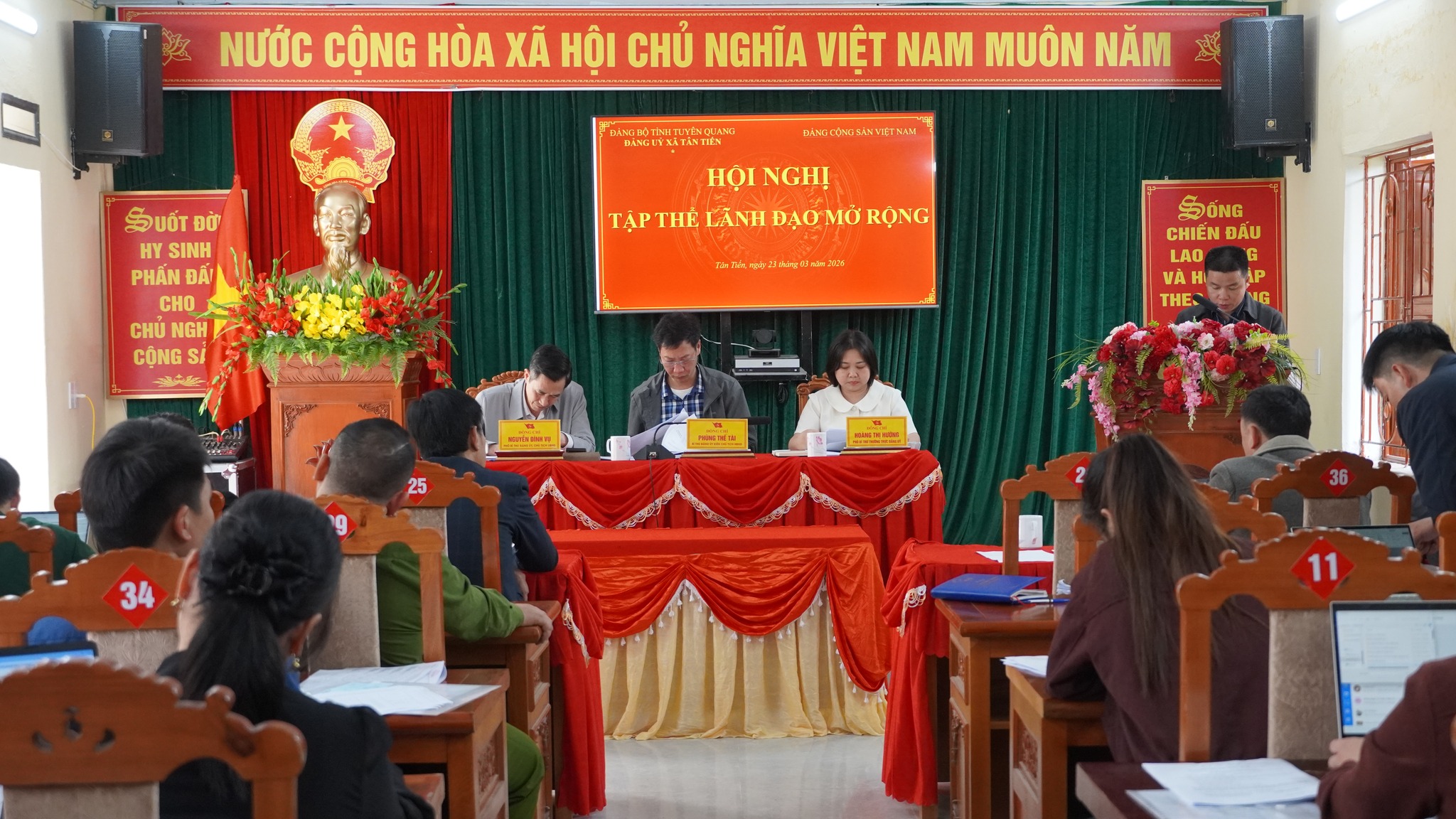 Sáng ngày 26/3, Đảng bộ xã Tân Tiến tổ chức hội nghị Ban chấp hành lần thứ 7 (mở rộng), nhiệm kỳ 2025 -2030 để thảo luận, đánh giá tình hình thực hiện nhiệm vụ quý I, thống nhất phương hướng, nhiệm vụ trọng tâm quý II năm 2026 và xem xét, cho ý kiến vào một số nội dung theo thẩm quyền.