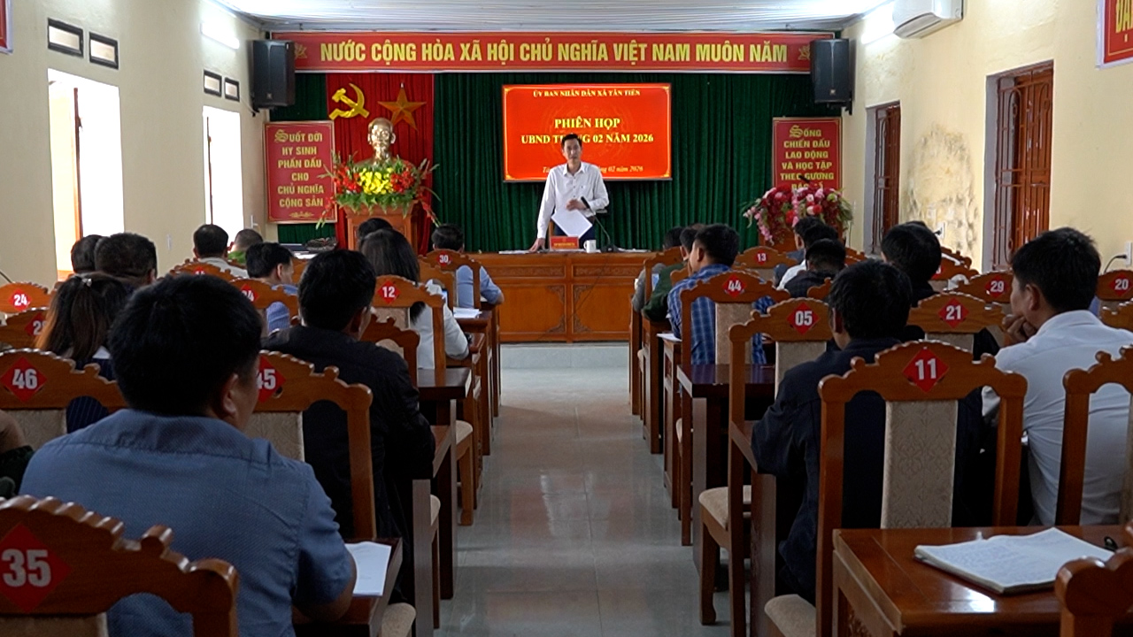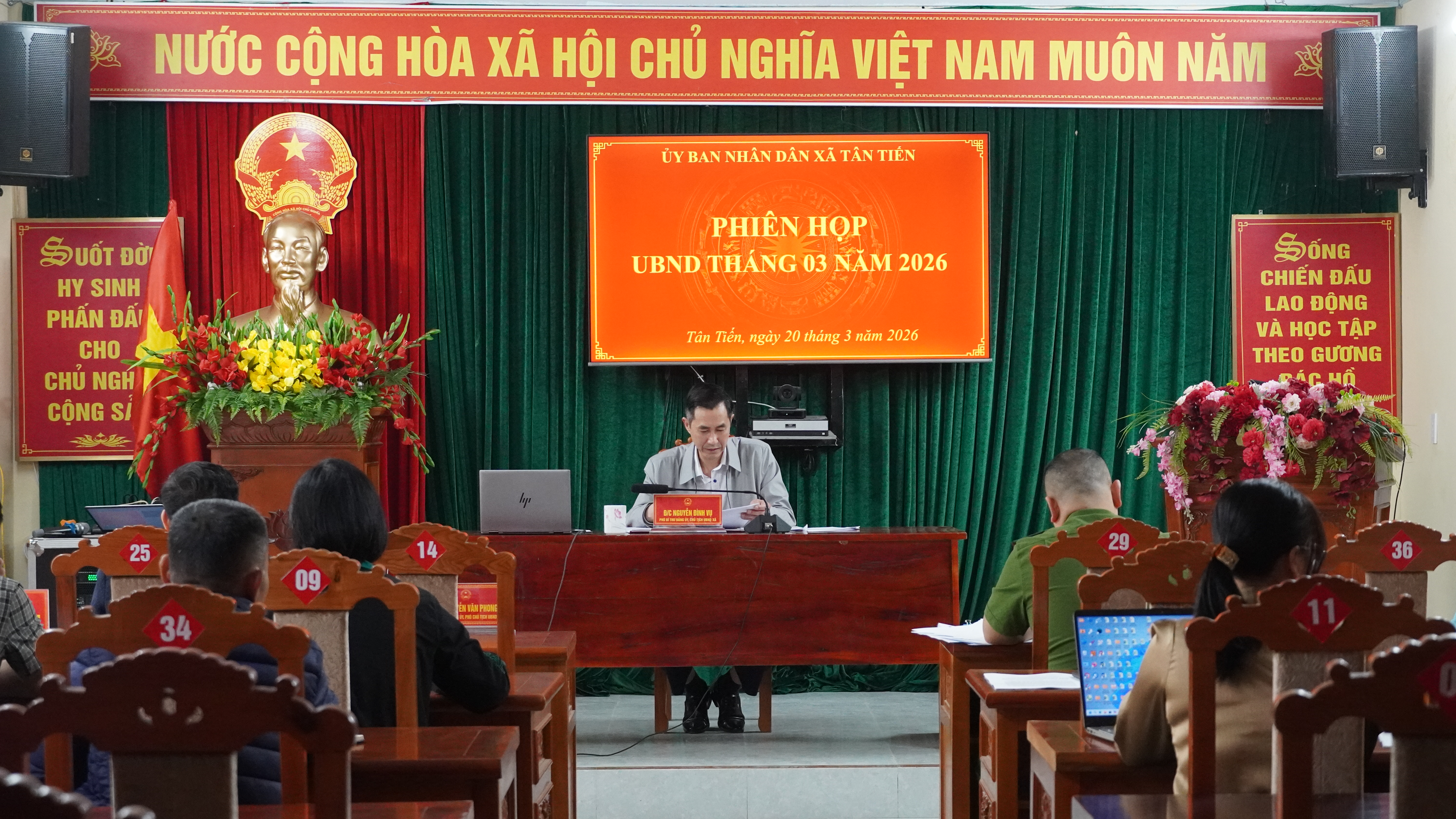 Ngày 24/02/2026, UBND xã Tân Tiến tổ chức phiên họp thường kỳ tháng 02 nhằm đánh giá kết quả thực hiện nhiệm vụ phát triển kinh tế – xã hội tháng 02/2026, đề ra phương hướng, nhiệm vụ trọng tâm tháng 03/2026; đồng thời thảo luận, thống nhất các kế hoạch lớn trong năm 2026 và định hướng giai đoạn 2026 – 2030.