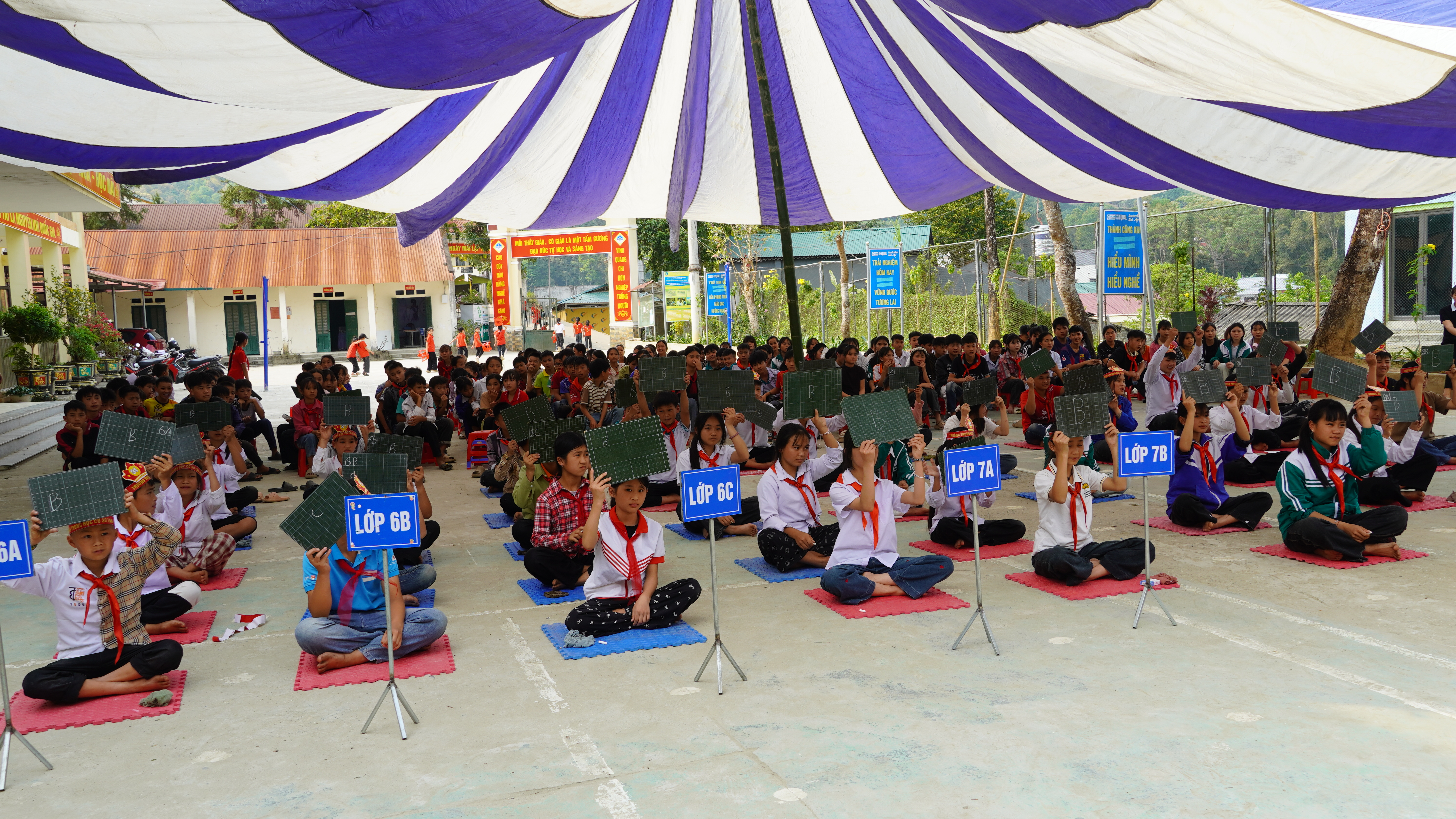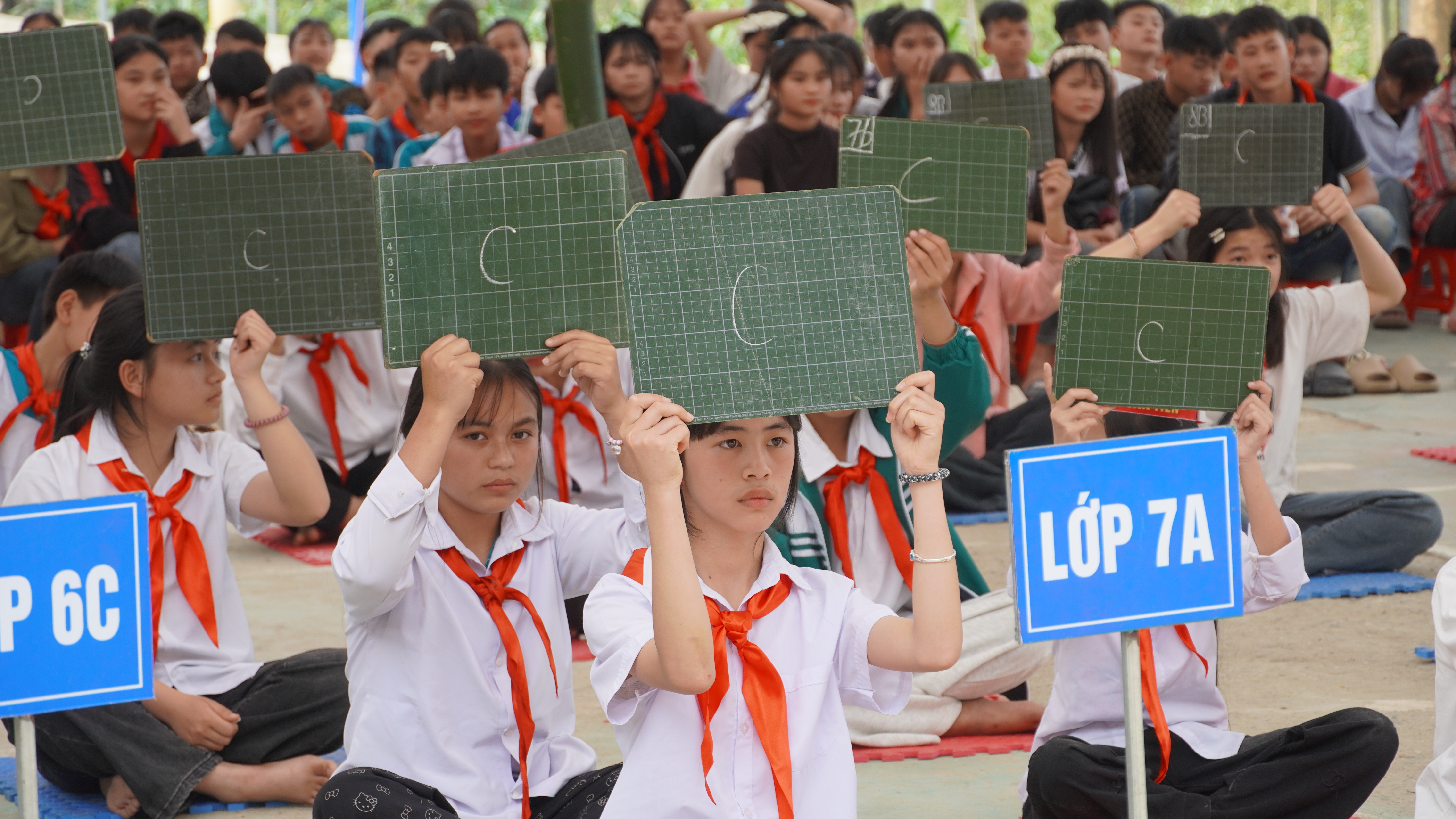 Bên cạnh đó, Ban Tổ chức đã triển khai các sân chơi trí tuệ cho học sinh Tiểu học và Trung học cơ sở với hình thức hỏi – đáp, đố vui kiến thức. Nội dung câu hỏi được xây dựng theo dạng tình huống, gắn với các vấn đề như bình đẳng giới, phòng chống tảo hôn và hôn nhân cận huyết thống, giúp các em dễ hiểu, dễ tiếp thu. Qua phần thi, học sinh được nhận biết các hành vi đúng – sai, hiểu rõ tác hại của các vấn đề trên; đồng thời biết cách xử lý một số tình huống gần gũi trong cuộc sống liên quan đến bình đẳng giới, tảo hôn và hôn nhân cận huyết thống. Hoạt động đã tạo không khí sôi nổi, thu hút đông đảo học sinh tham gia, góp phần rèn luyện tư duy, kỹ năng phản xạ, khả năng làm việc nhóm và mạnh dạn, tự tin trong giao tiếp. Qua đó, giúp các em nâng cao ý thức học tập, chủ động tìm hiểu kiến thức và hình thành những hành vi, thói quen tích cực phù hợp với lứa tuổi.
