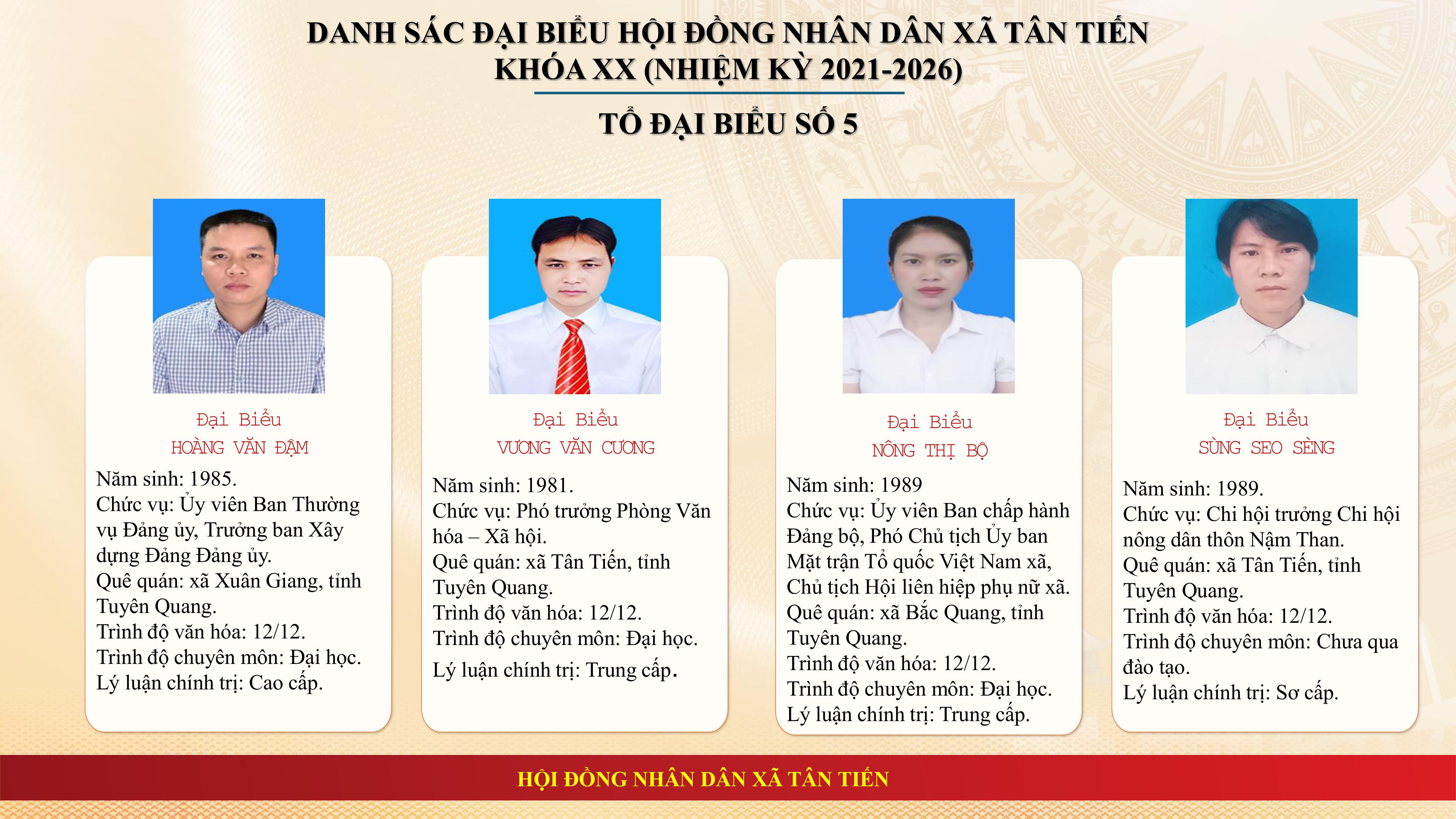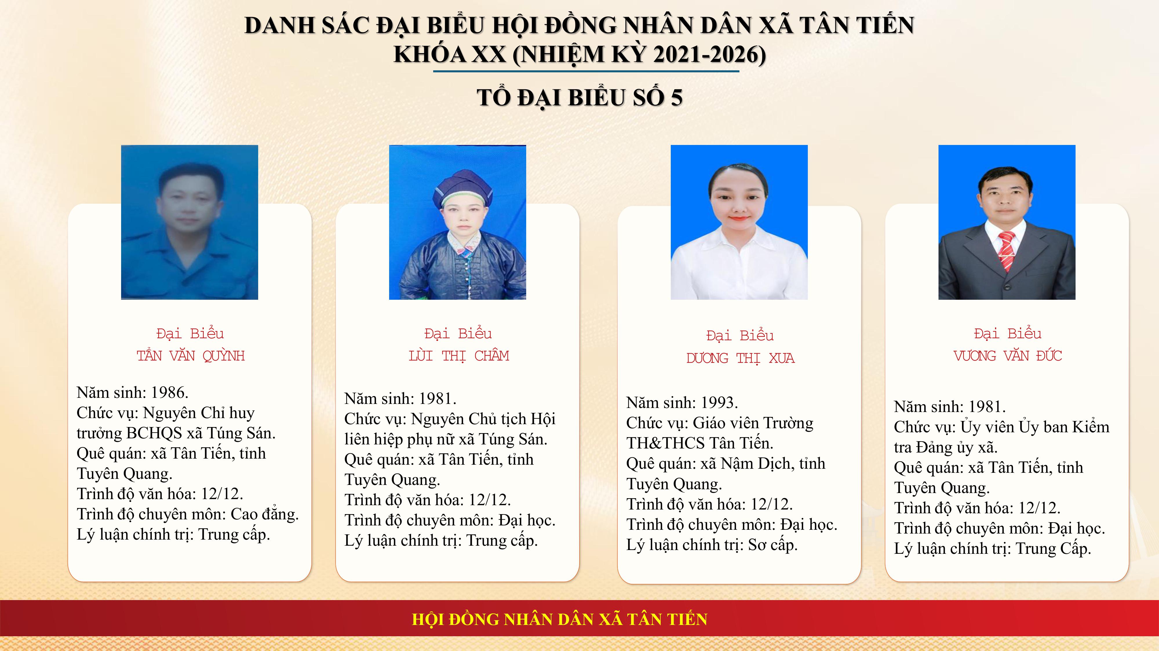 Thành lập 06 Tổ đại biểu, xác định số lượng đại biểu Hội đồng nhân dân Tổ đại biểu và phân công Tổ trưởng, Tổ phó của Tổ đại biểu Hội đồng nhân dân xã Tân Tiến khóa XX, nhiệm kỳ 2021 - 2026