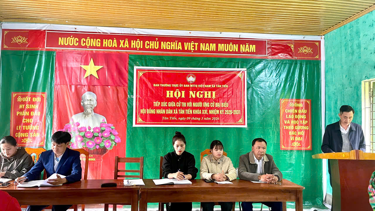 Tham dự hội nghị có 05 ứng cử viên đại biểu HĐND xã tại đơn vị bầu cử số 05: gồm ông Nguyễn Đình Vụ - Phó bí thư đảng ủy, Chủ tịch UBND xã; ông Thèn Văn Nam - Phó Trưởng Ban Kinh tế - Ngân sách Hội đồng nhân dân xã; bà Thào Thị Pằng – Chuyên viên Trung tâm PVHCC; bà Dương Thị Xua - Giáo viên Trường PTTDBT TH & THCS Tân Tiến; bà Lù Thị Vương đại biểu ứng cử HĐND xã.