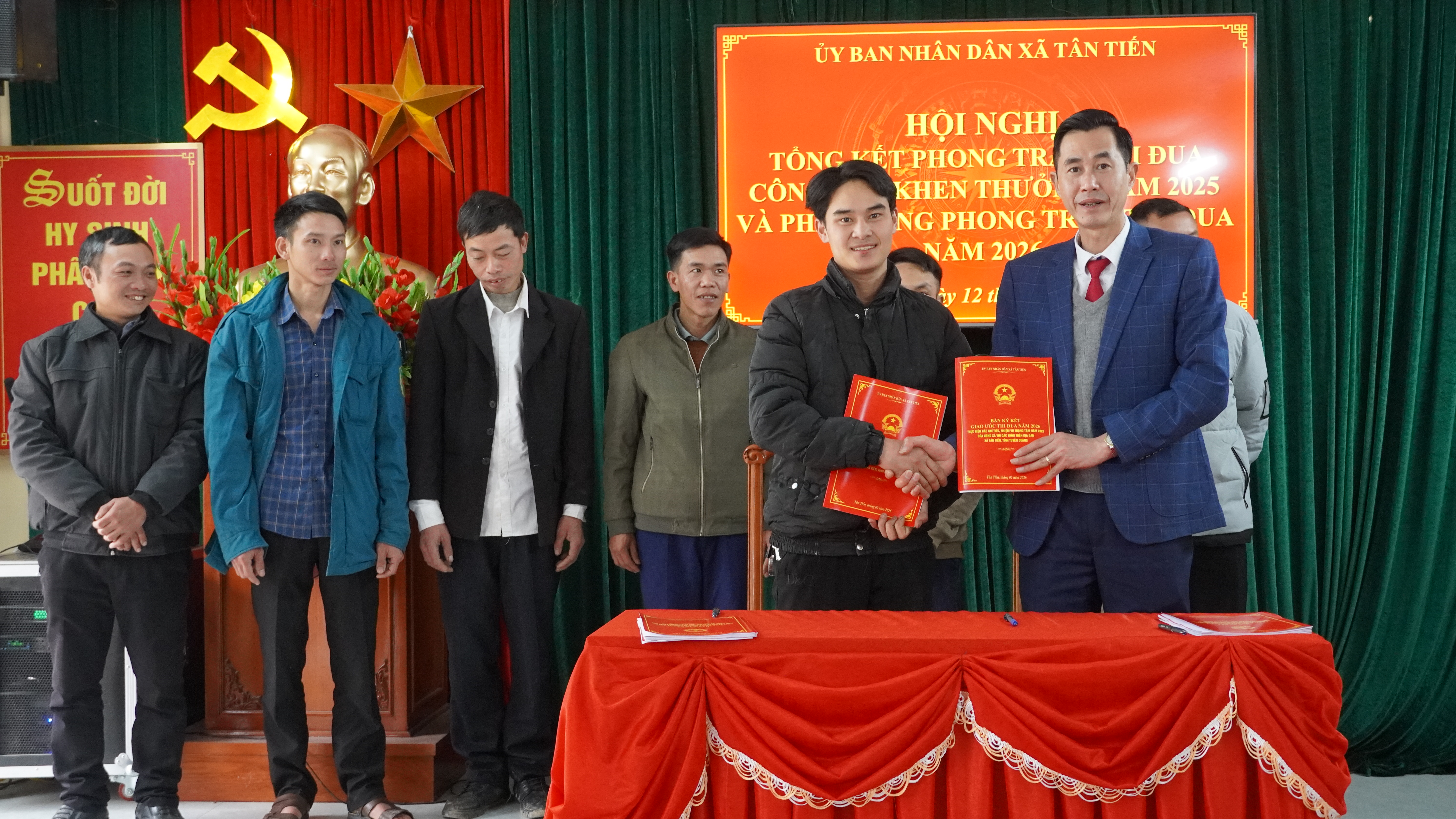 Năm 2026, xã Tân Tiến tiếp tục thực hiện các chủ trương của Đảng, chính sách, pháp luật của Nhà nước về thi đua, khen thưởng; chú trọng đổi mới nội dung và hình thức thi đua; quan tâm phát hiện, bồi dưỡng và nhân rộng các điển hình tiên tiến; chú trọng khen thưởng tập thể, cá nhân lao động trực tiếp trong các lĩnh vực nông nghiệp, công nghiệp, dịch vụ; nâng cao chất lượng đội ngũ cán bộ làm công tác thi đua, khen thưởng.