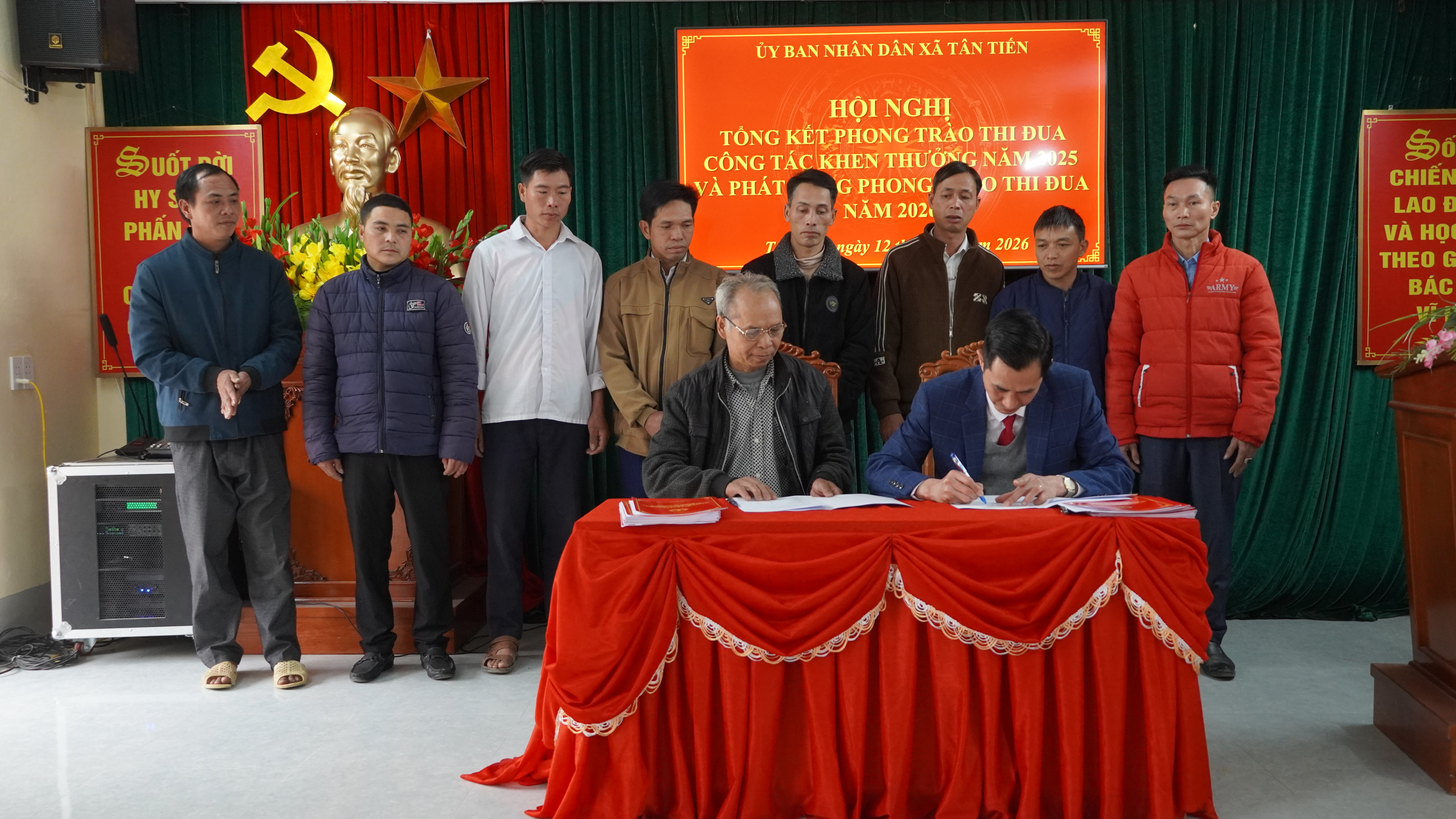 Tại hội nghị, UBND xã đã tổ chức ký kết giao ước thi đua năm 2026 giữa UBND xã với các thôn. Nội dung giao ước tập trung vào việc thực hiện thắng lợi các chỉ tiêu phát triển kinh tế – xã hội, xây dựng nông thôn mới, giảm nghèo bền vững, nâng cao chất lượng các tiêu chí văn hóa – môi trường, bảo đảm an ninh trật tự và đẩy mạnh cải cách hành chính ở cơ sở. Đại diện các thôn đã ký cam kết thi đua với tinh thần quyết tâm cao, thể hiện sự đồng thuận, thống nhất trong toàn xã.
