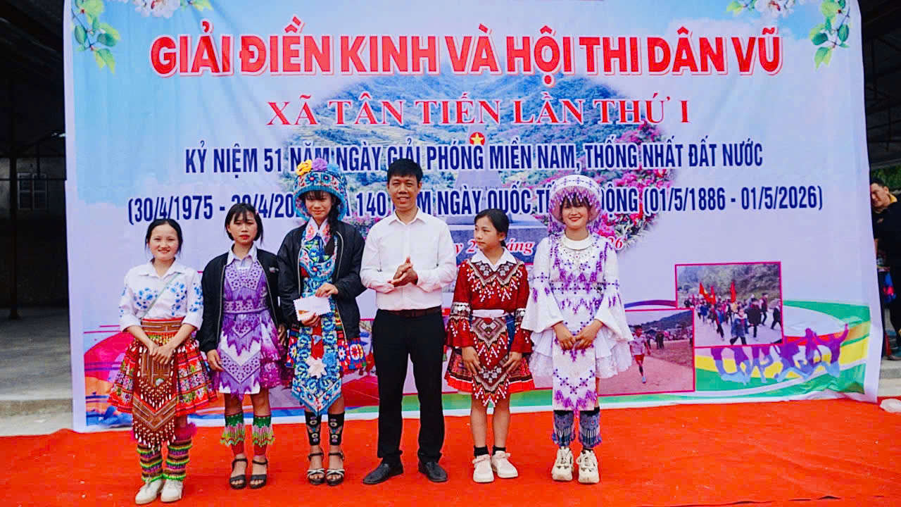 Trong không khí rộn ràng của những ngày tháng Tư lịch sử, khi khắp nơi hướng về kỷ niệm Ngày Giải phóng miền Nam (30/4/1975 – 30/4/2026) và Ngày Quốc tế Lao động (30/4/1975 – 30/4/2026), xã Tân Tiến đã tổ chức hội thi dân vũ dân tộc Mông – một hoạt động văn hóa mang đậm bản sắc, góp phần gìn giữ và lan tỏa những giá trị truyền thống tốt đẹp của đồng bào.