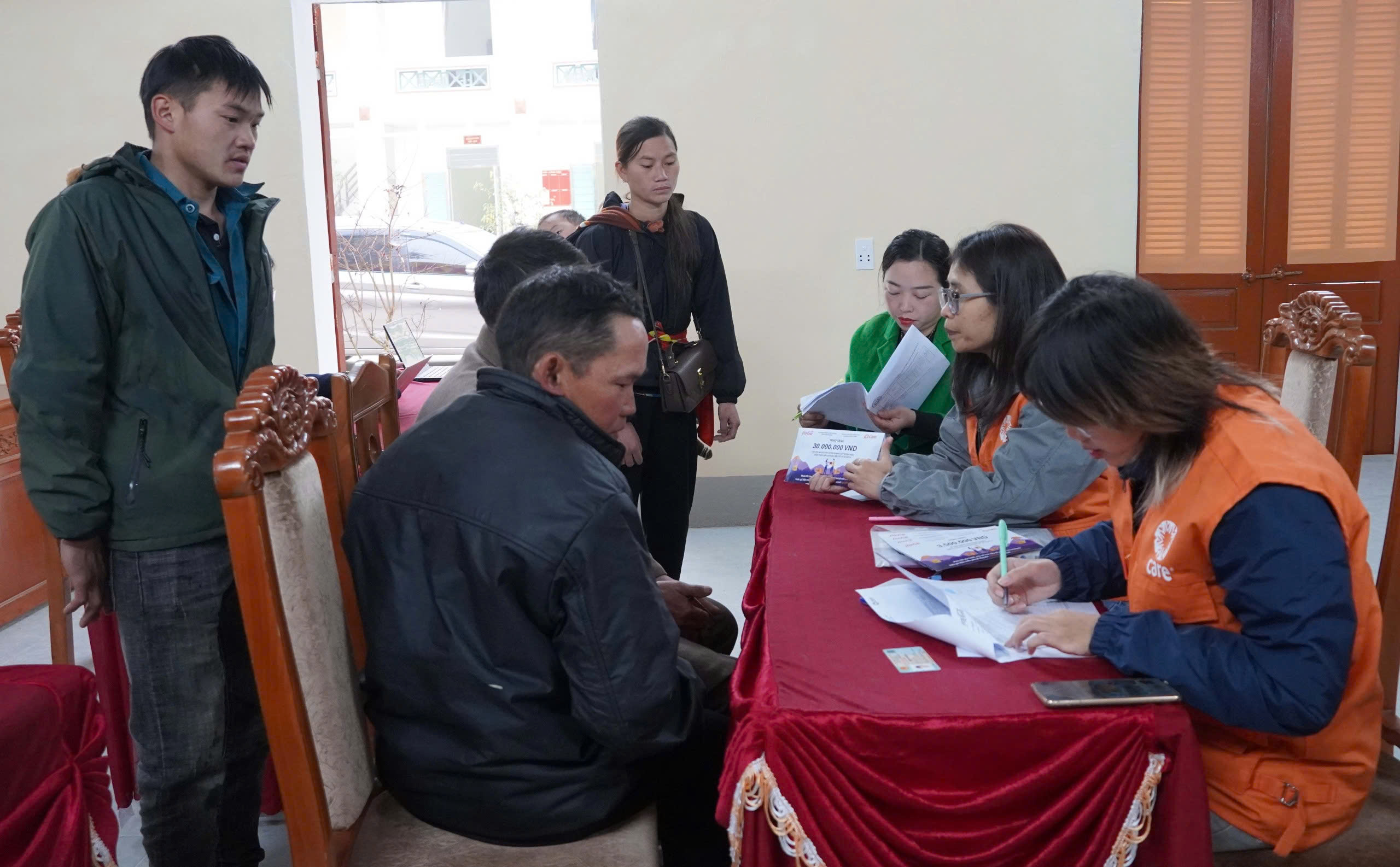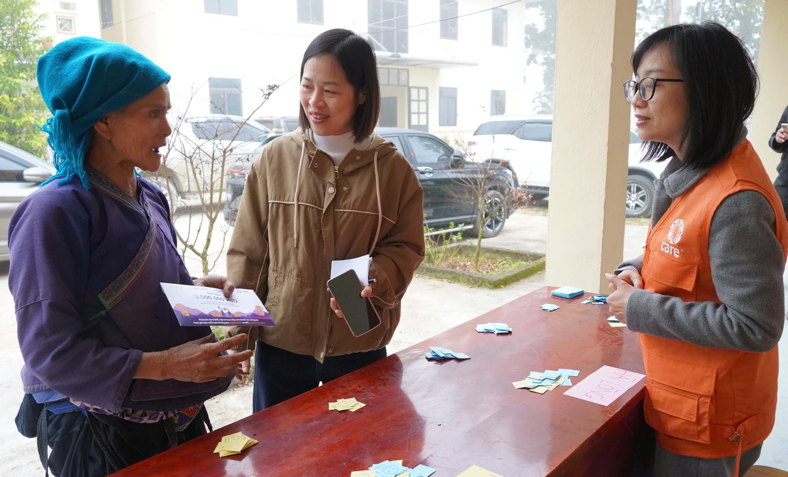 Tổng kinh phí hỗ trợ của CARE trong đợt này 874 triệu, trao trực tiếp cho 52 hộ gia đình bị ảnh hưởng. Trong đó: hỗ trợ sữa chữa nhà ở 06 hộ mỗi hộ 20 triệu đồng; hỗ trợ di dời nhà ở 02 hộ mỗi hộ 60 triệu đồng; 3,5 triệu đồng cho 44 hộ đa mục đích.