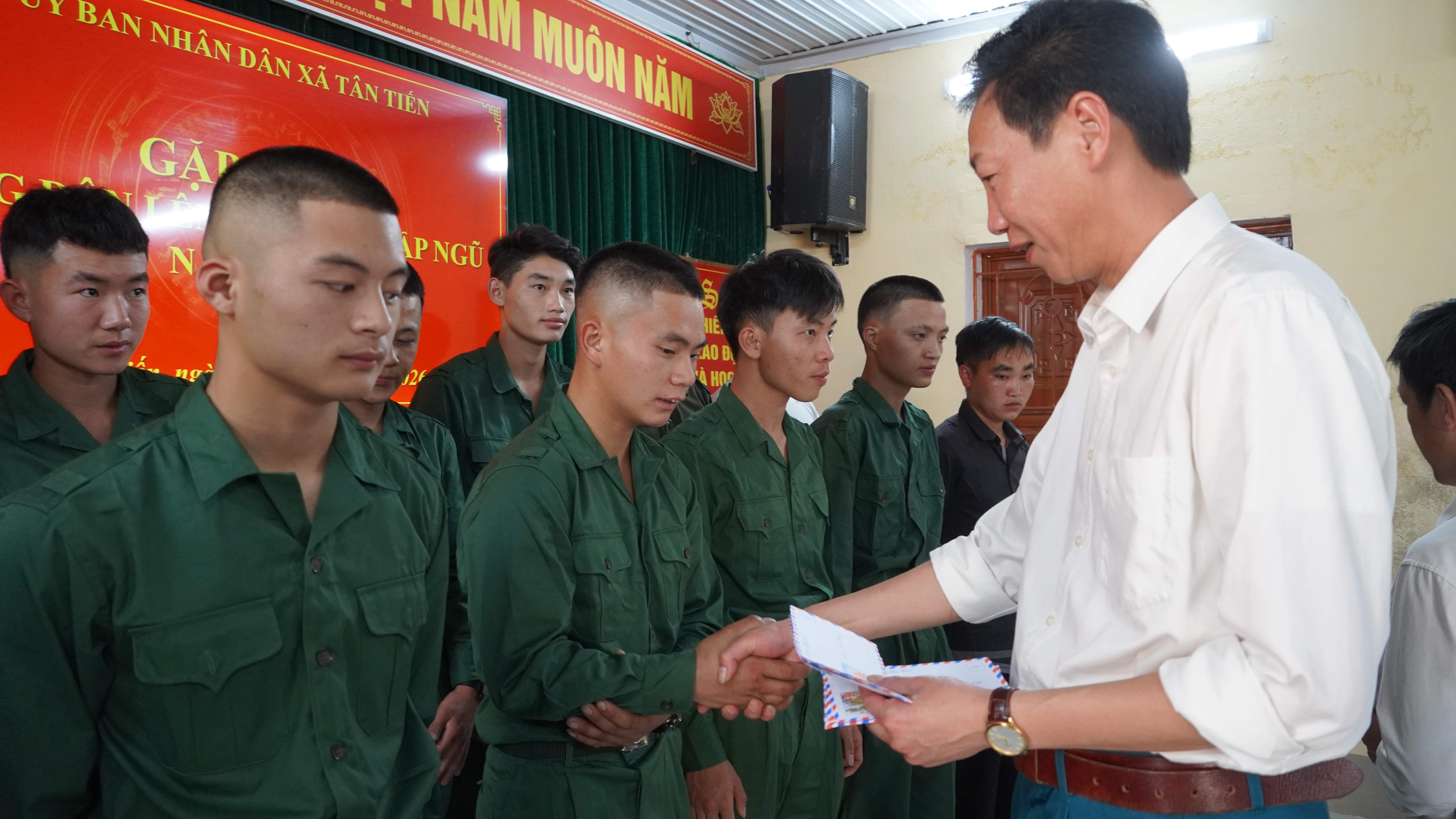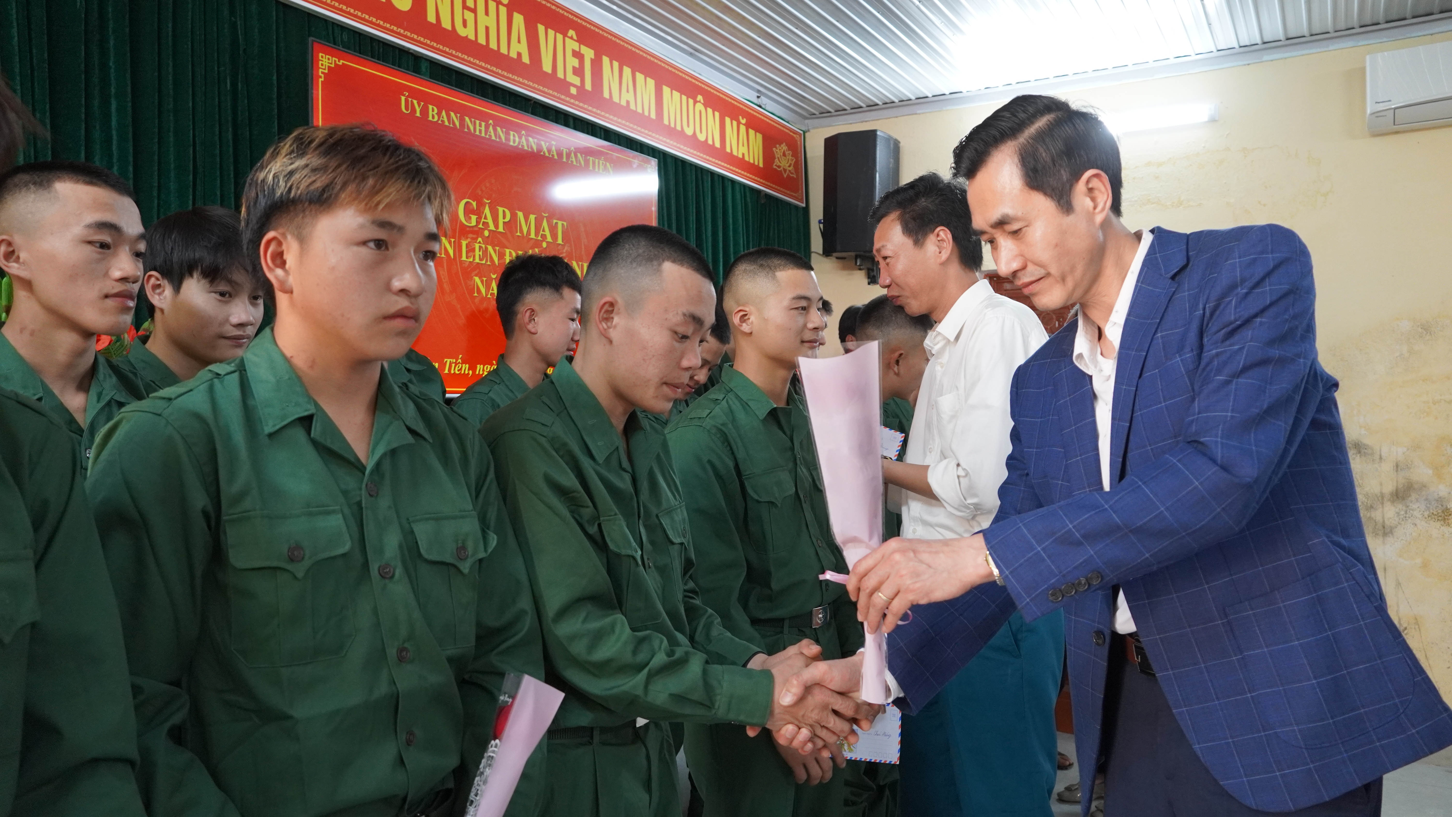 Tại buổi gặp mặt, các đồng chí lãnh đạo xã đã ân cần thăm hỏi, động viên các tân binh giữ gìn sức khỏe, nỗ lực rèn luyện, chấp hành nghiêm kỷ luật, hoàn thành tốt nhiệm vụ được giao trong môi trường quân ngũ của Quân đội nhân dân Việt Nam. Đồng thời mong muốn các gia đình tiếp tục quan tâm, động viên con em yên tâm thực hiện nhiệm vụ, phấn đấu trưởng thành.