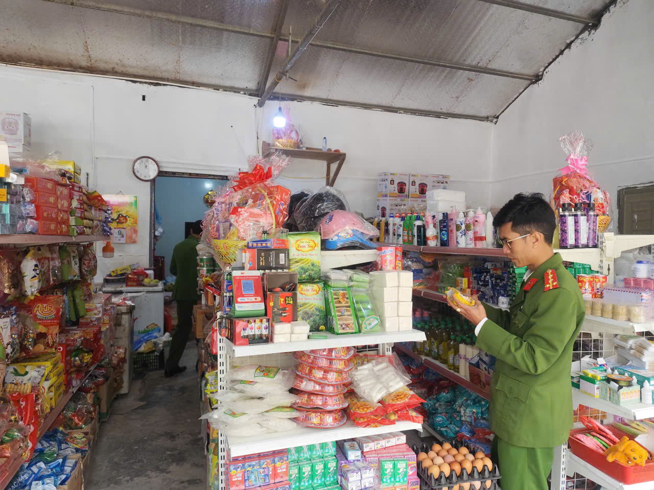 Theo đó, Đoàn kiểm tra liên ngành của xã đã tiến hành kiểm tra tại các cơ sở sản xuất, chế biến, kinh doanh thực phẩm, các cửa hàng tạp hóa, quầy bán bánh kẹo, nước giải khát, cơ sở giết mổ, kinh doanh thực phẩm tươi sống và các hộ kinh doanh dịch vụ ăn uống trên địa bàn xã. Nội dung kiểm tra tập trung vào việc chấp hành các quy định của pháp luật về an toàn thực phẩm như: điều kiện vệ sinh cơ sở, trang thiết bị dụng cụ; nguồn gốc, xuất xứ hàng hóa; hạn sử dụng sản phẩm; việc niêm yết giá và bảo quản thực phẩm; giấy chứng nhận cơ sở đủ điều kiện an toàn thực phẩm theo quy định.