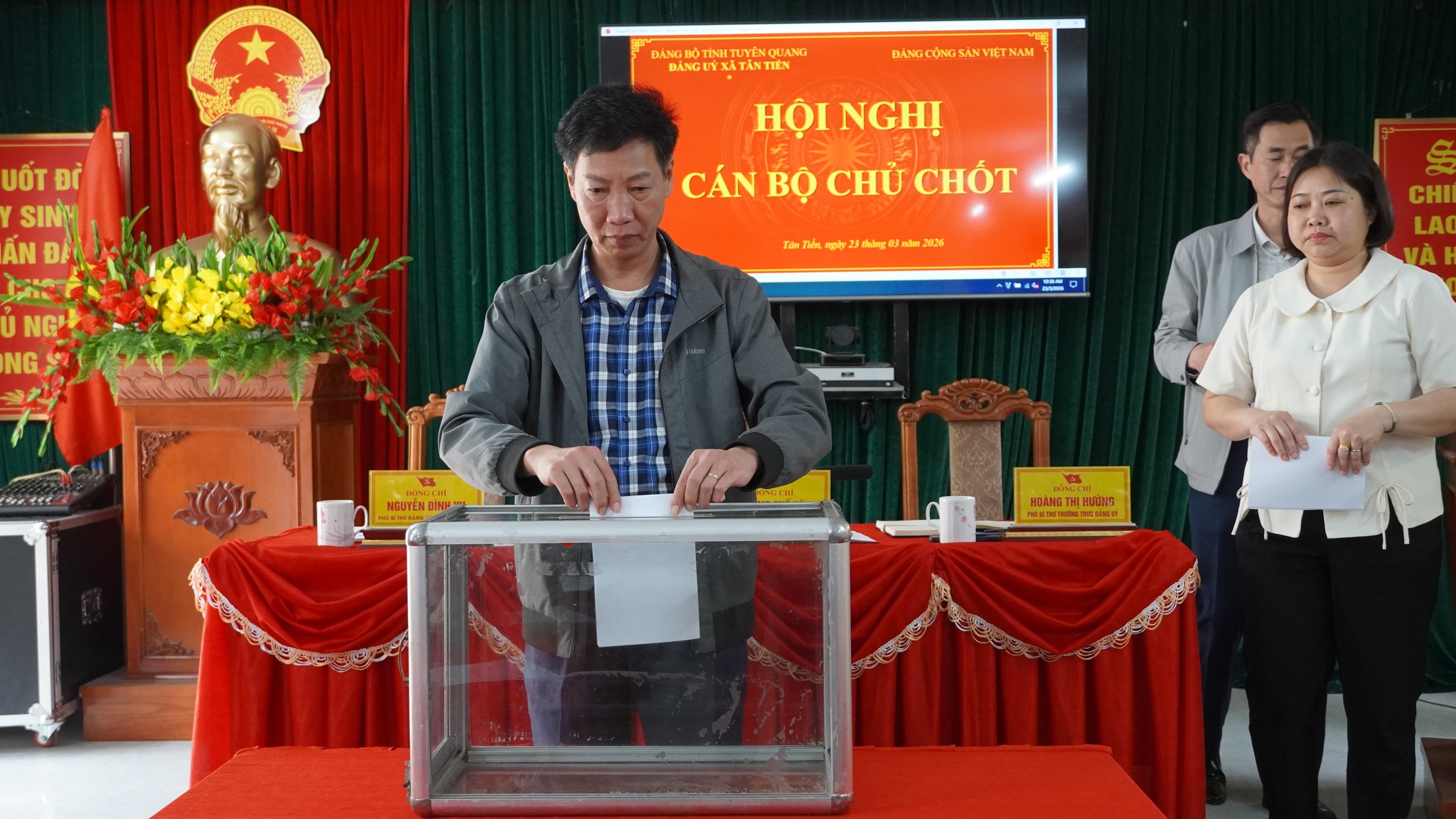 Với tinh thần dân chủ, khách quan và trách nhiệm cao, các đại biểu tham dự hội nghị đã tiến hành bỏ phiếu tín nhiệm đối với danh sách cán bộ chủ chốt được giới thiệu.