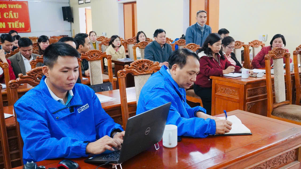 Tham dự buổi làm việc và triển khai các hoạt động của Dự án Plan tại xã Tân Tiến có đại diện Văn phòng Plan vùng Tuyên Quang; lãnh đạo UBND xã Tân Tiến; thành viên Ban Quản lý Dự án Plan xã.