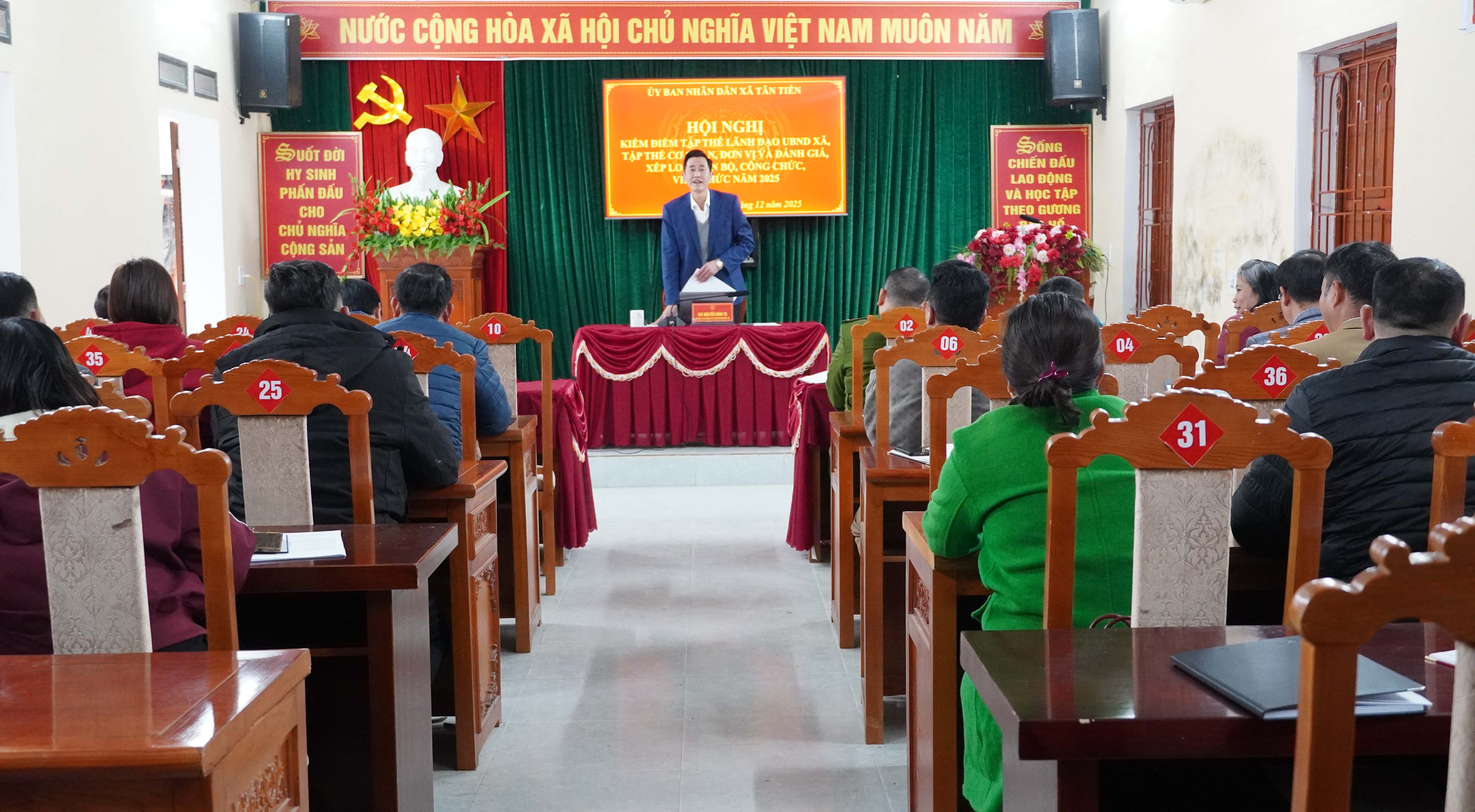 Chiều ngày 22/12/, UBND xã Tân Tiến tổ chức phiên họp thành viên UBND xã tháng 12 nhằm đánh giá kết quả thực hiện nhiệm vụ phát triển kinh tế – xã hội, quốc phòng – an ninh năm 2025; đồng thời triển khai phương hướng, nhiệm vụ trọng tâm tháng năm 2026. Đồng chí Nguyễn Đình Vụ - PBT Đảng ủy, Chủ tịch UBND xã chủ trì phiên họp.