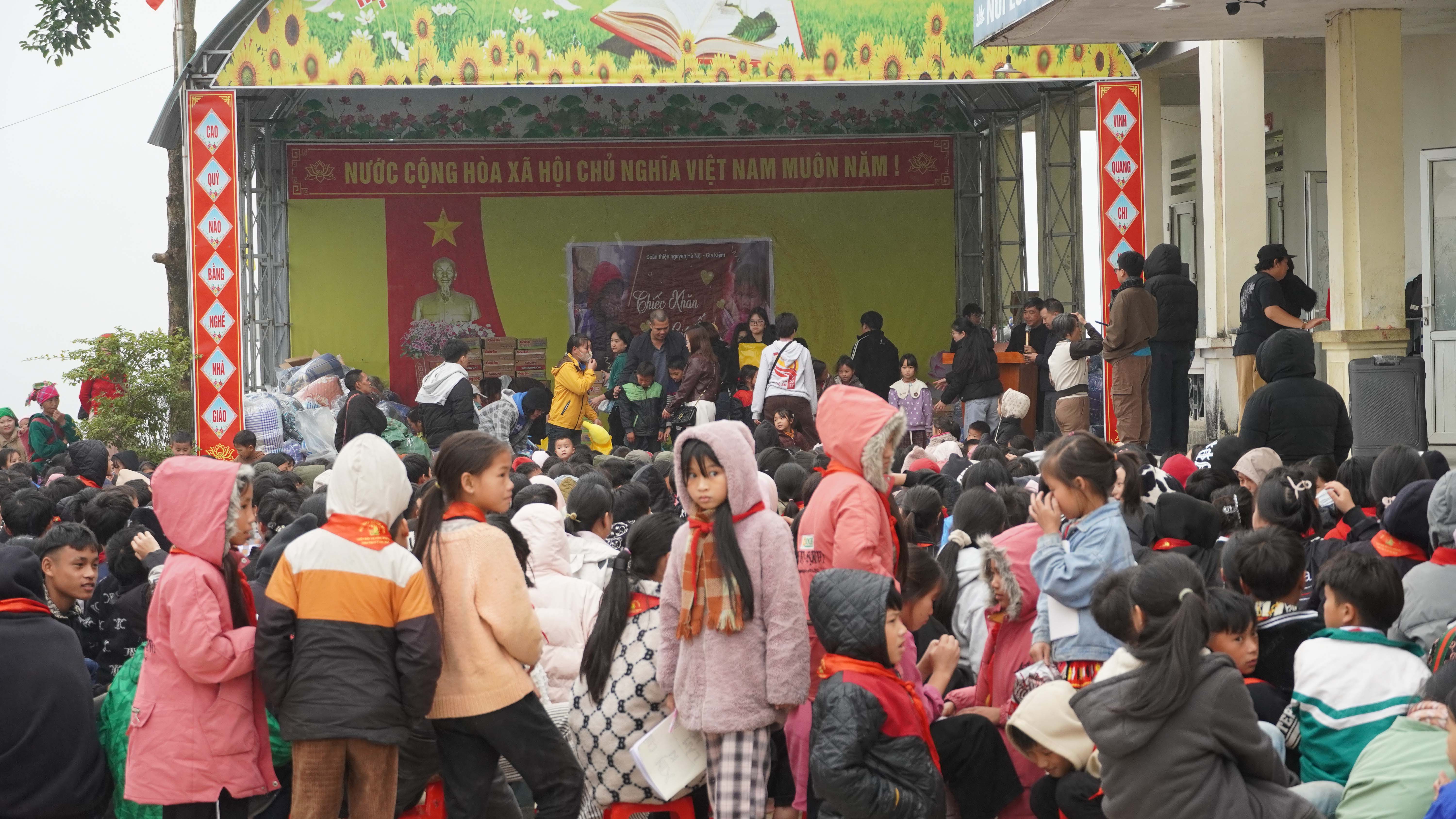 Nhằm sẻ chia những khó khăn với các em học sinh vùng cao, ngày 05/12, Đoàn thiện nguyện “Chiếc khăn gió ấm” mùa tám do bà Vũ Thị Thùy Dương làm Trưởng đoàn trao tặng nhiều phần quà cho các em học sinh có hoàn cảnh khó khăn tại Trường PTDT Bán trú TH&THCS Túng Sán xã Tân Tiến, tỉnh Tuyên Quang. Về phía xã có đồng chí Bùi Thanh Hưởng – Phó chủ tịch UBND xã, lãnh đạo nhà trường cùng toàn thể các em học sinh.