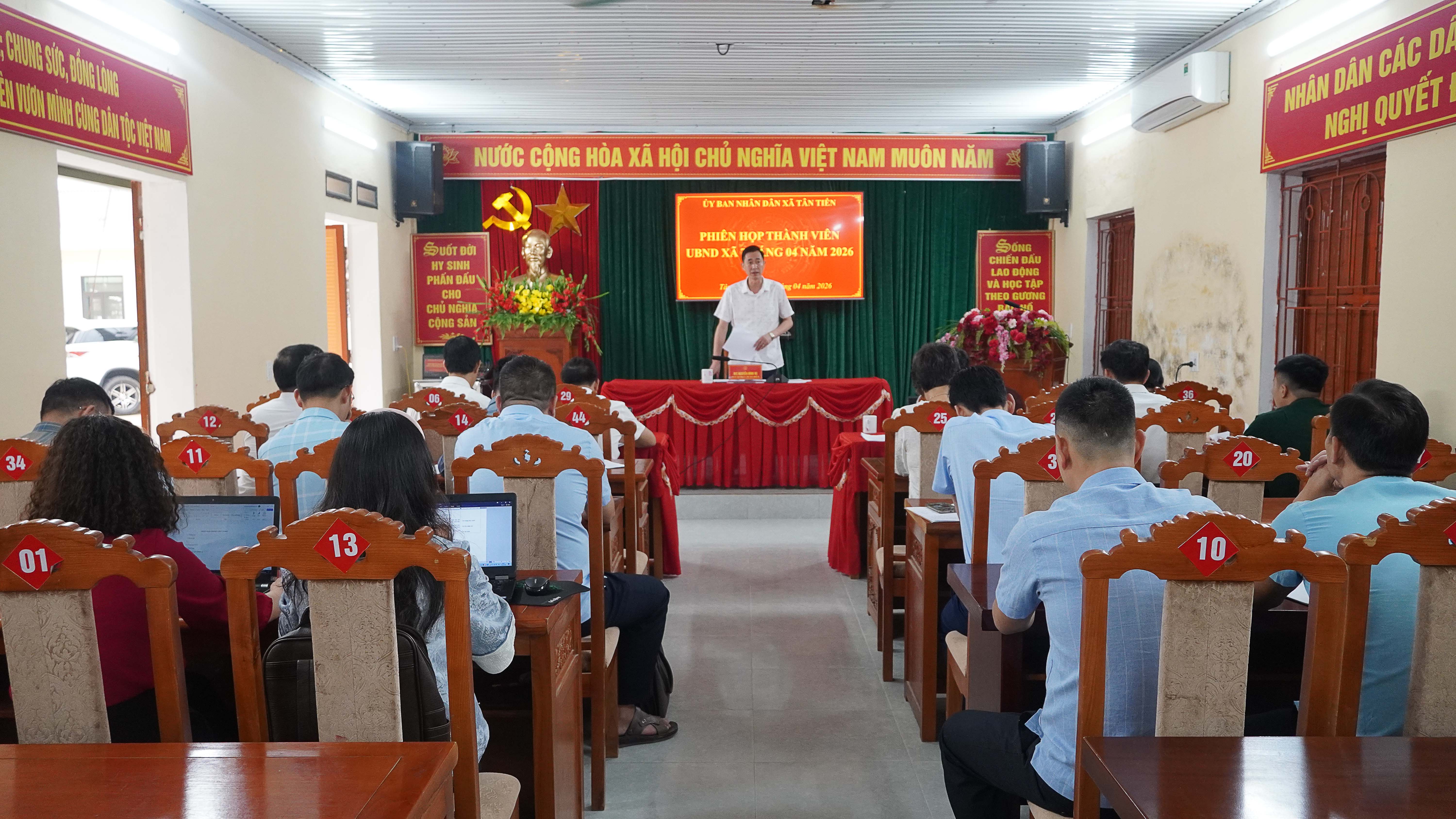 Sáng ngày 16/4/2026, Ủy ban nhân dân xã Tân Tiến tổ chức phiên họp thành viên UBND thường kỳ tháng 4 nhằm đánh giá tình hình thực hiện nhiệm vụ phát triển kinh tế - xã hội, quốc phòng - an ninh và triển khai phương hướng, nhiệm vụ trọng tâm tháng 5/2026.