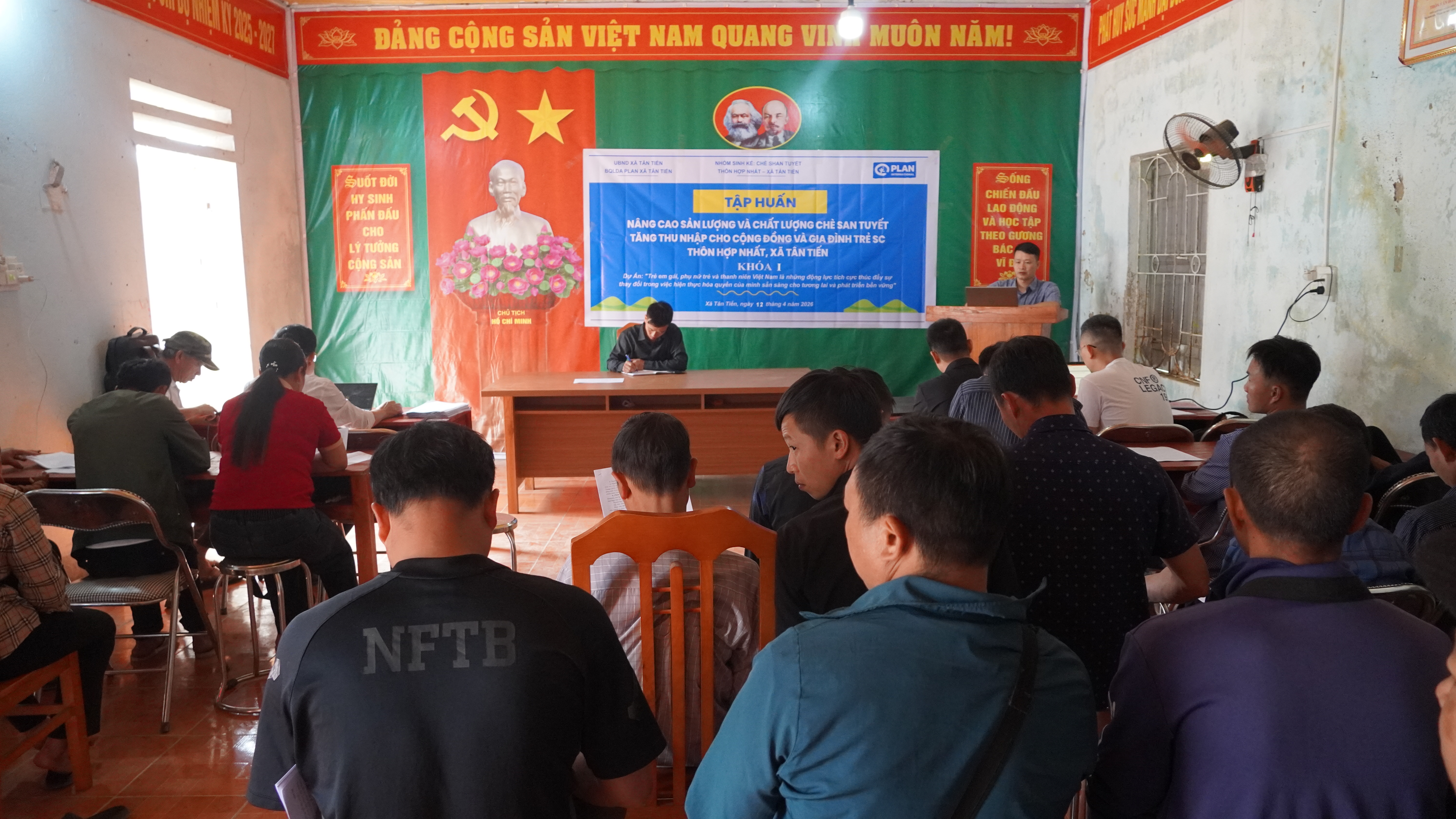 Nhằm triển khai hiệu quả sáng kiến “Nâng cao sản lượng và chất lượng chè Shan tuyết, góp phần tăng thu nhập cho người dân”, UBND xã Tân Tiến phối hợp với Văn phòng Plan vùng Tuyên Quang tổ chức mở báo giá để lựa chọn đơn vị thực hiện các hoạt động hỗ trợ tại thôn 1 Hợp Nhất, đồng thời triển khai các lớp tập huấn về kỹ thuật sản xuất chè và quản lý tài chính dự án.